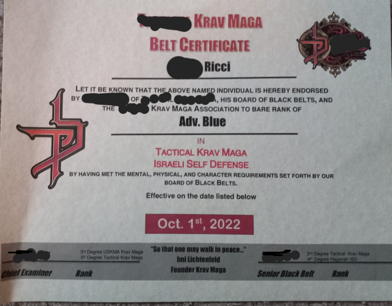 The fact that we even had the rank of "advanced blue" is a red flag in itself. Krav Maga doesn't have that rank normally. It seemed like the curriculum our main coach had was something he had completely came up with. Coaches and masters do come up with their own curriculums, but finding evidence of approval from an official Krav Maga association was impossible.